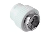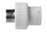 Цилиндрический фитинг, с одной стороны которого расположен полипропиленовый раструб для пайки, а с другой — металлическая вставка с наружной или внутренней резьбой. Это самый простой и дешёвый переходник. Применяется для прямых участков, где не предполагается регулярная разборка. Выпускается в диаметрах от 20 до 63 мм с резьбой от 1/2" до 2".