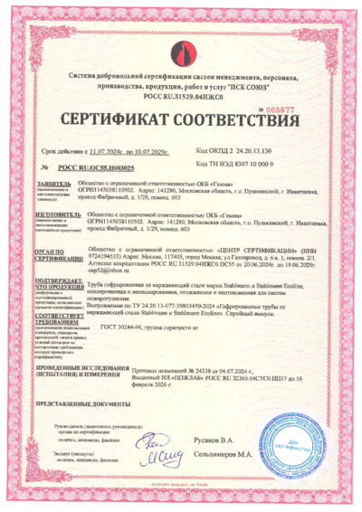 Добровольный сертификат пожарной безопасности трубы Stahlmann