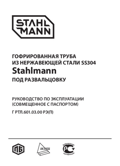 Паспорт на гофрированную трубу из нержавеющей стали SS304 Stahlmann под развальцовку
