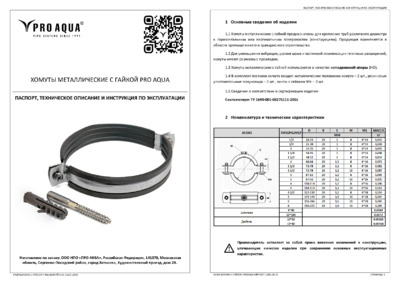 Pro Aqua PROFIXINGS Комплект хомут металлический с гайкой