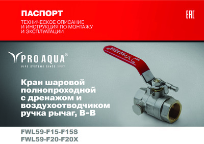 Паспорт Кран шаровой Pro Aqua с дренажом и воздухоотводчиком