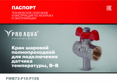 Паспорт Кран шаровой Pro Aqua для подключения датчика температуры ручка-бабочка