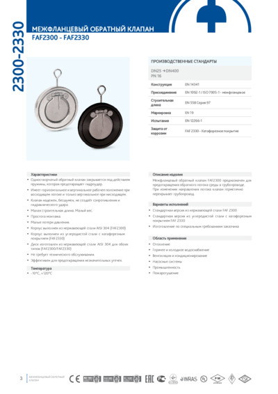 Технический лист. Клапан обратный межфланцевый FAF 2300
