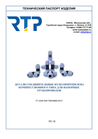 Детали RTP соединительные из полипропилена компрессионного типа для напорных трубопроводов