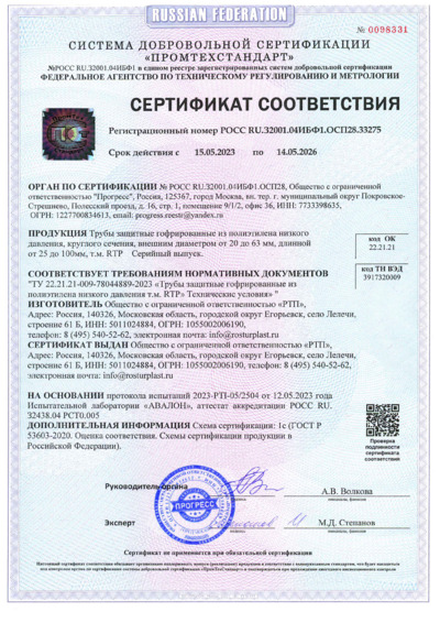Сертификат Трубы гофрированные RTP Delta