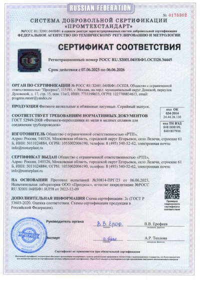 Фитинги аксиальные и обжимные латунные RTP DELTA
