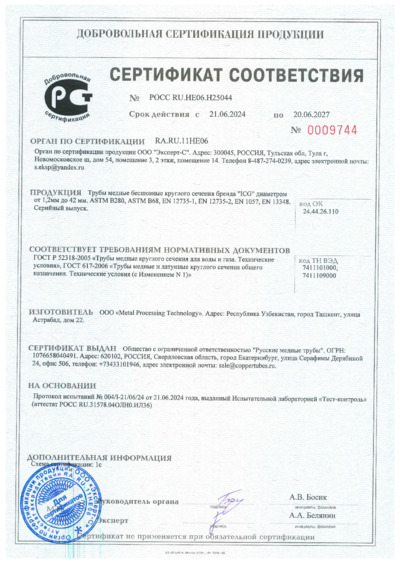 ICG Труба медная отожженная EN12735 в бухте метрическая