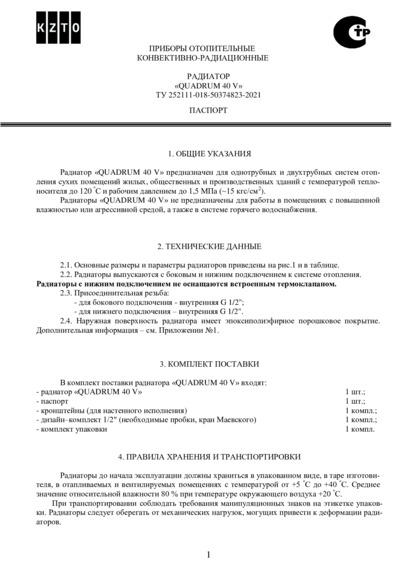 Паспорт радиатора Quadrum 40 V
