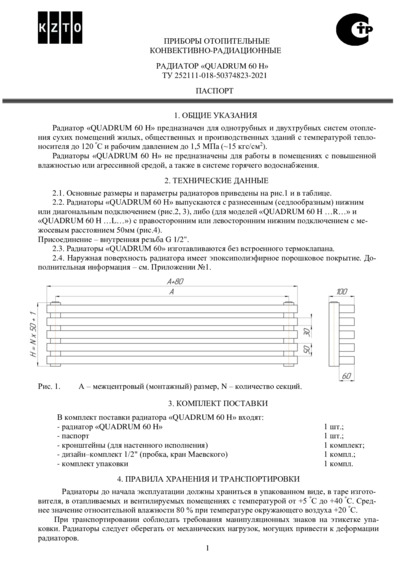 Паспорт радиатора Quadrum 60H