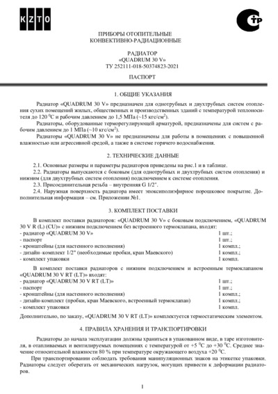 Паспорт радиатора Quadrum 30V