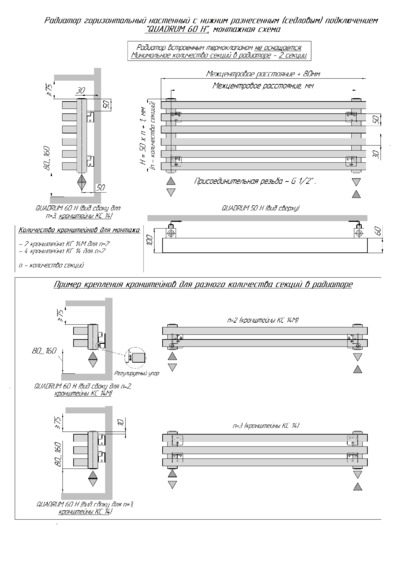 Монтажные схемы для радиаторов Quadrum 60H