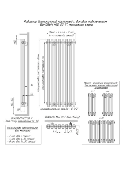 Монтажные схемы для радиаторов Quadrum NEO 50V