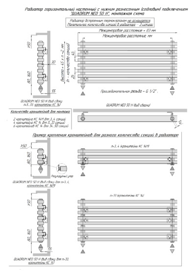 Монтажные схемы для радиаторов Quadrum NEO 50H