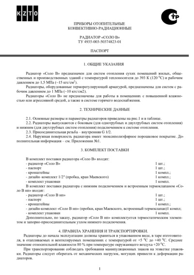 Паспорт радиатор стальной трубчатый Соло В
