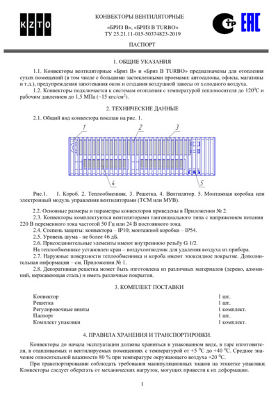 Паспорт конвектора Бриз В и Бриз В TURBO