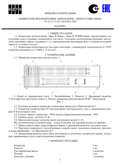 Паспорт конвекторы Бриз В НЕРЖ, Бриз В TURBO НЕРЖ