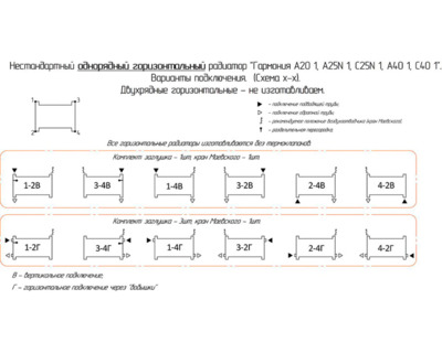 Нестандартный однорядный горизонтальный радиатор Гармония (варианты подключения)