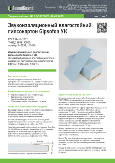 Технический лист Gipsofon УК