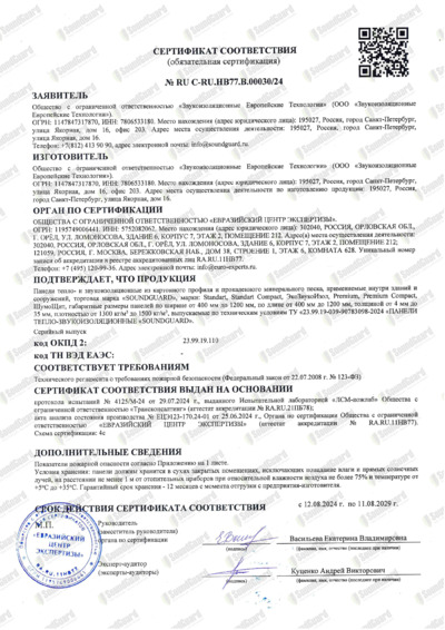 Обязательный пожарный сертификат панель SoundGuard