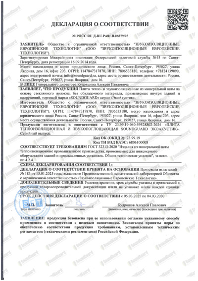 Декларация о соответствии ЭкоАкустик