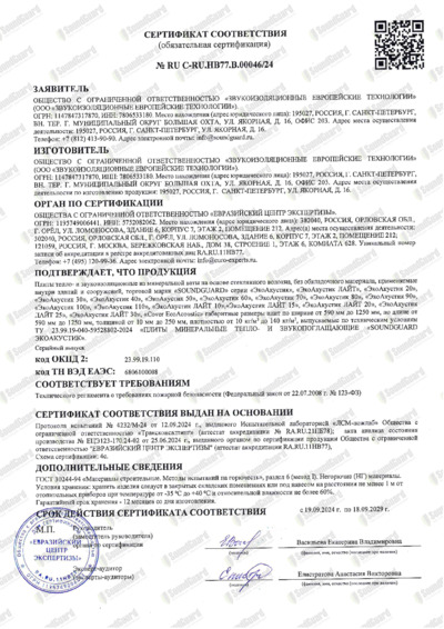 Сертификат соответствия звукоизоляция SoundGuard ЭкоАкустик