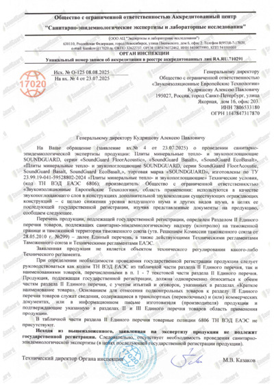 Отказное письмо звукопоглощающие плиты SoundGuard