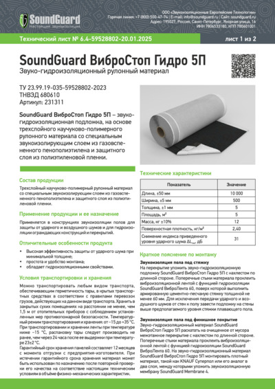 Звуко-гидроизоляционный рулонный материал SoundGuard ВиброСтоп Гидро 5П