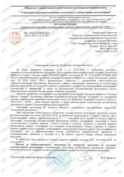 Отказное письмо SoundGuard ВиброСтоп Гидро