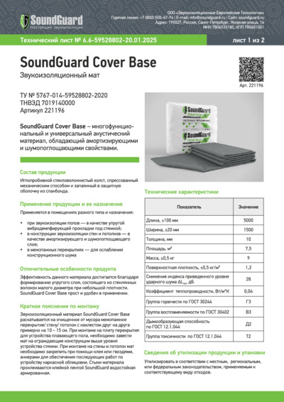 Технический лист SoundGuard Cover Base