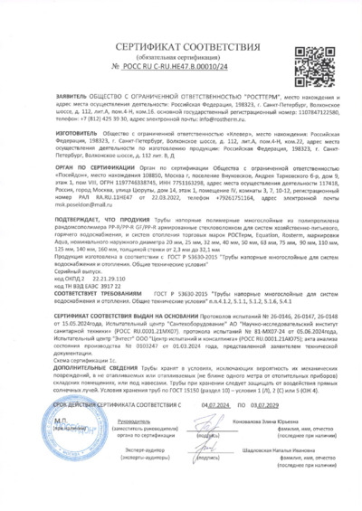 Сертификат соответствия Ростерм трубы и фитинги из полипропилена
