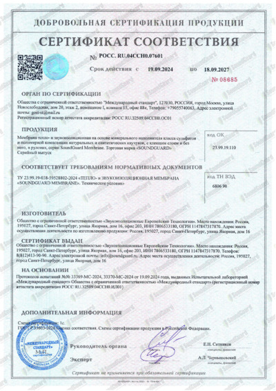 Сертификат соответствия шумоизоляция SoundGuard