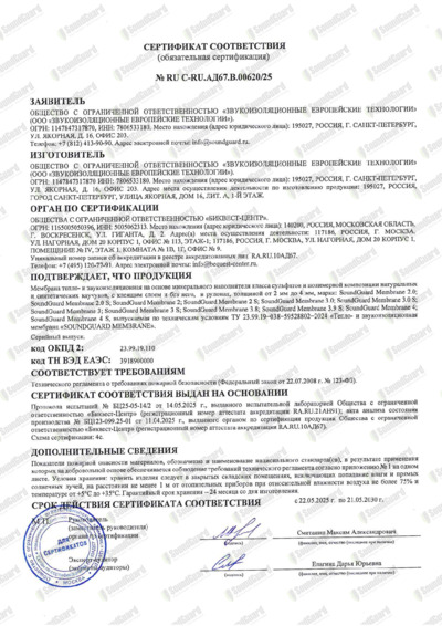 Обязательный пожарный сертификат шумоизоляция SoundGuard