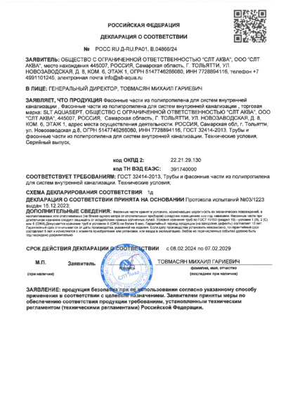 Декларация о соответствии SLT AQUA SEPT Фасонные части