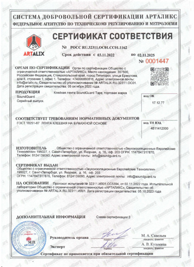 Сертификат соответствия SoundGuard Tape