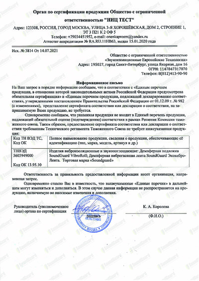 Отказное письмо SoundGuard VibroTape