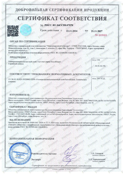 Сертификат соответствия контактный клей SoundGuard