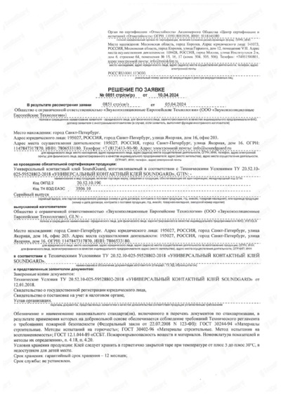 Отрицательное решение по пожарной безопасности клей SoundGuard