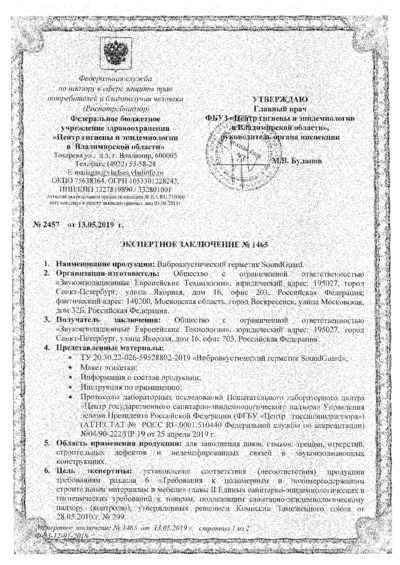 Экспертное заключение SoundGuard Виброакустический герметик