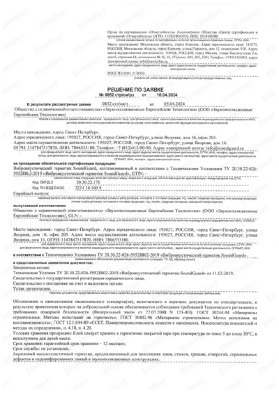 Отрицательное решение по пожарной безопасности. Виброакустический герметик SoundGuard