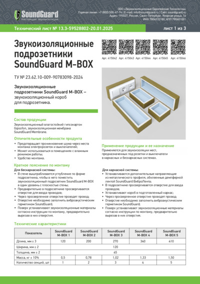 Технический лист звукоизоляционный подрозетник SoundGuard M-BOX