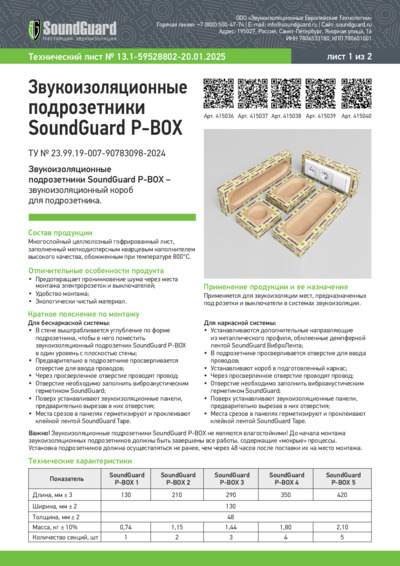 Технический лист звукоизоляционные подрозетники SoundGuard P-BOX