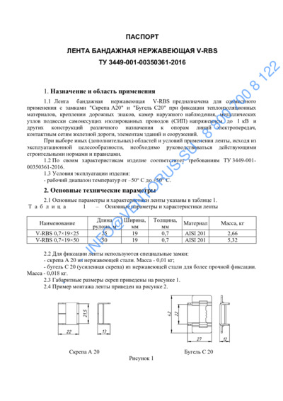 Паспорт изделия. Лента бандажная нержавеющая V-RBS