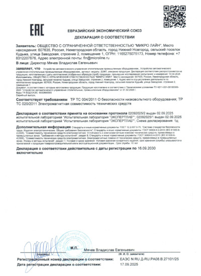 Сертификат. Адаптер цифровой шины ECO ARDERIA