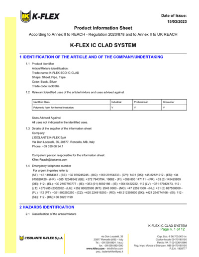 Паспорт MSDS K-FLEX ECO IC CLAD