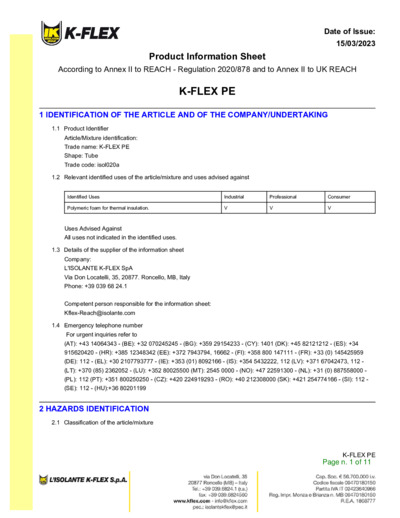 Паспорт MSDS K-FLEX PE