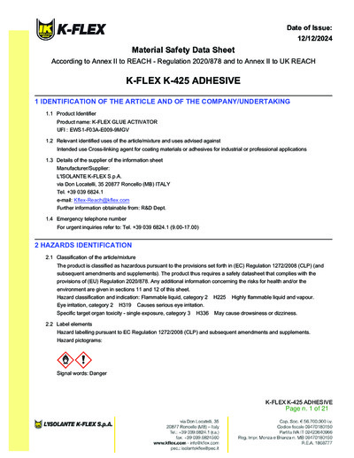 Паспорт MSDS K-FLEX K-425 ADHESIVE (активатор)