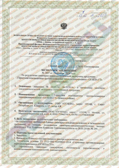 Экспертное заключение ОГНЕЗА-ГТ
