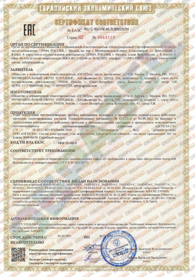 Пожарный сертификат ОГНЕЗА-ГТ