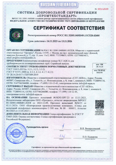 SLT AQUA Компенсатор сильфонный осевой КСО PP-R