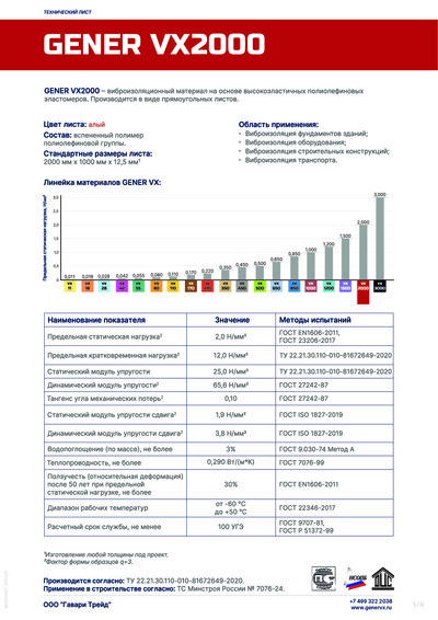 Технический лист вибромат GENER VX 2000